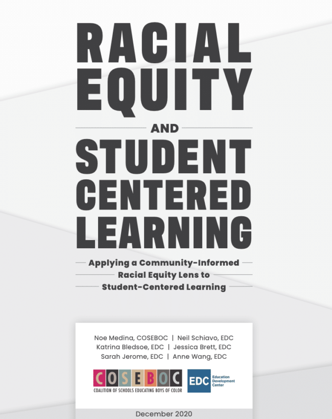 Racial Equity and Student-Centered Learning: Applying a Community-Informed Racial Equity Lens to Student-Centered Learning Download the Full PDFBack to Publications Page December 2020 This report examines how racial equity strategies and student-centered learning practices could be integrated to combat racism and racial inequities in education. It delves into racial equity issues as described by community…